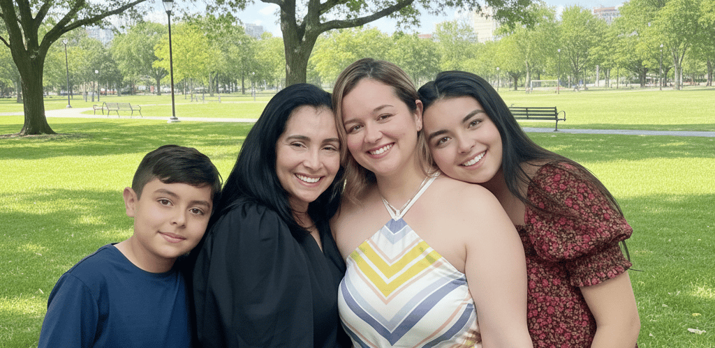Cada hermano tiene su espacio personal, donde sus historias, hijos y nietos se entrelazan en un árbol familiar vivo.